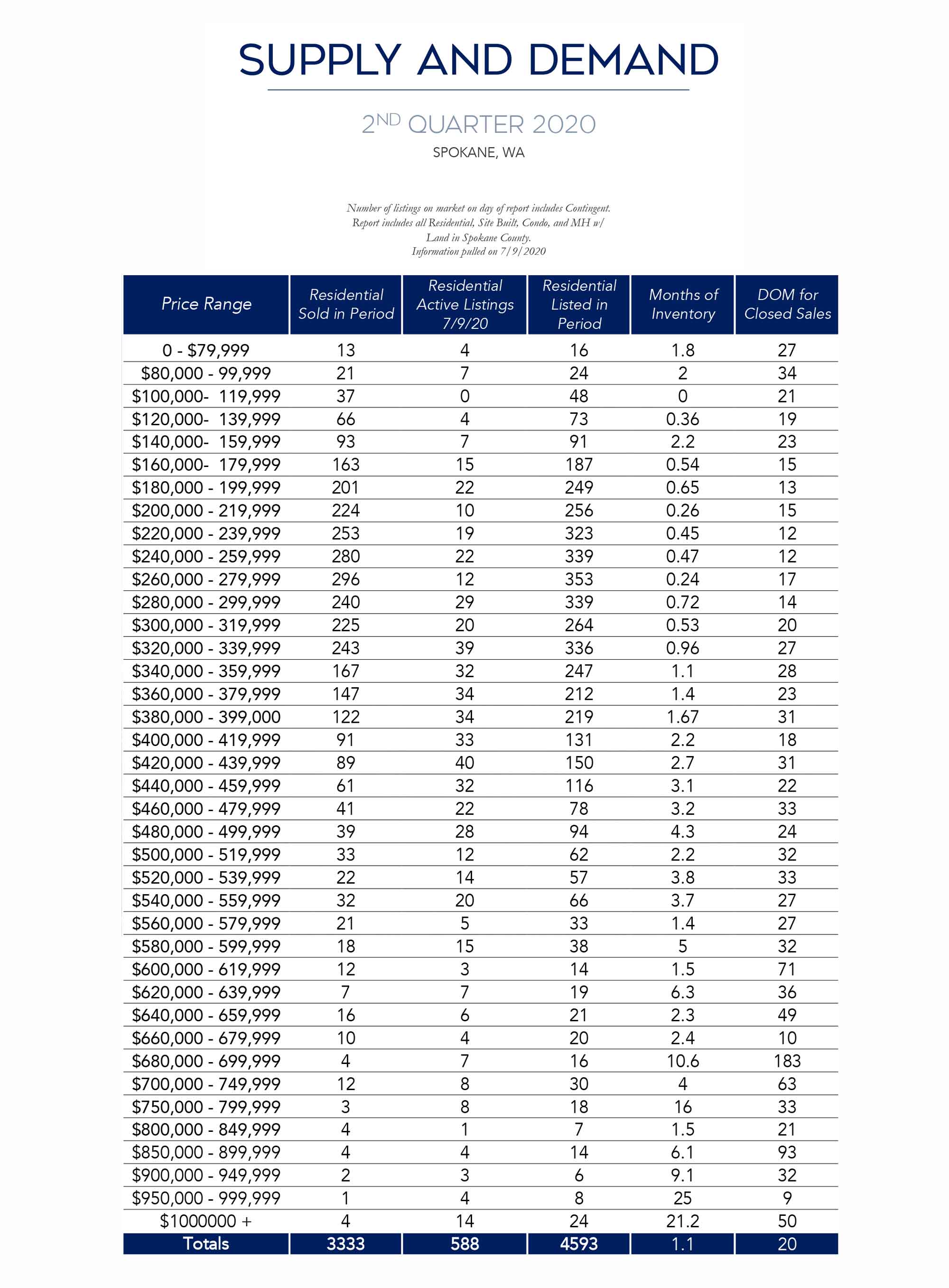 The information in this report is compiled from a report given by the Spokane Association of REALTORS© and to the best of our knowledge is accurate and correct.